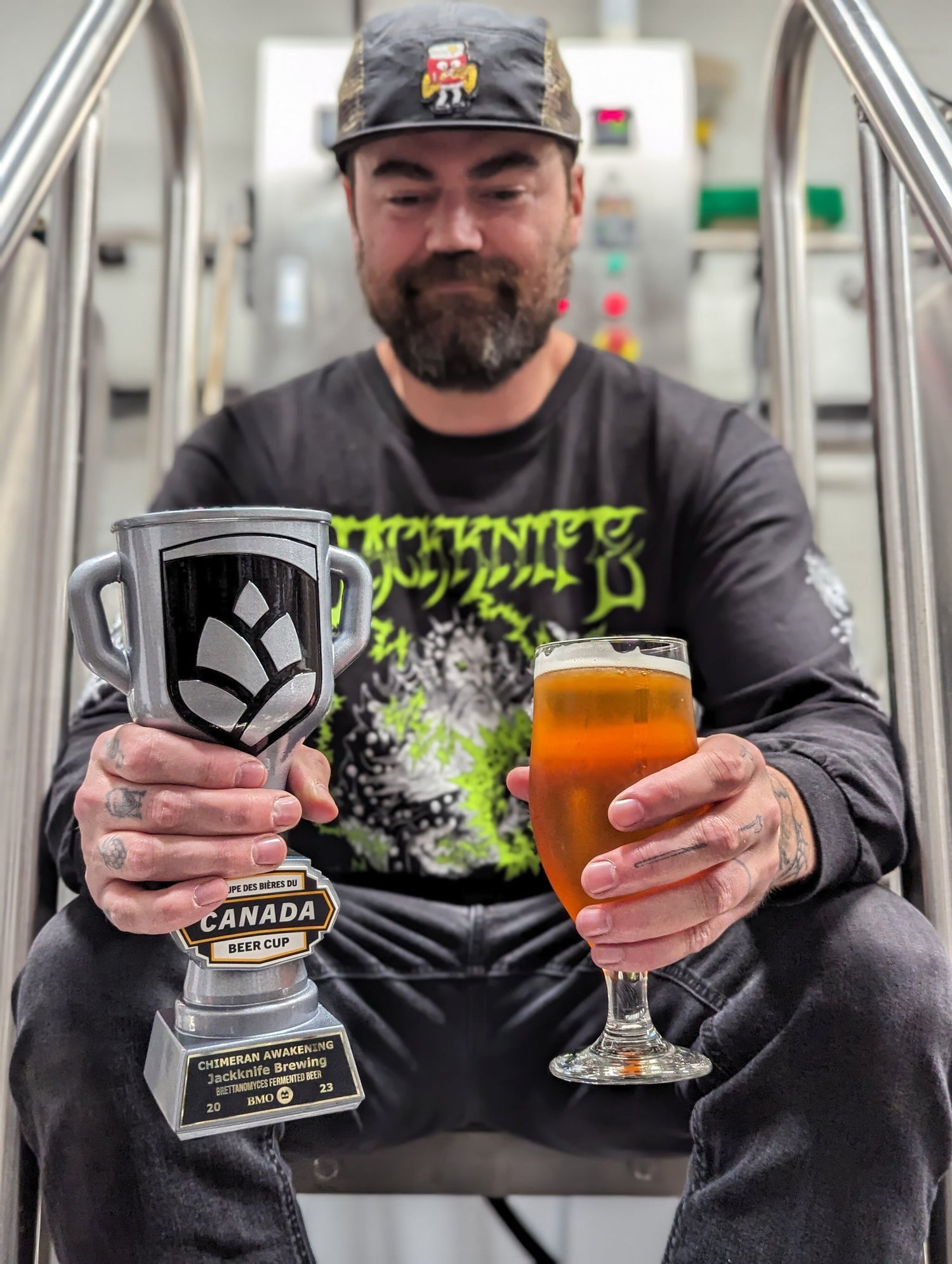 Our beer CHIMERAN AWAKENING won silver at this year's Canada Beer Cup in the brett fermented beer category. The beer wizard Brad has been making this beer since we opened up shop. It was always one of those fucked up dream beers that just sounded strange on paper but tastes amazing in the glass.We ferment this beer in three white wine barrels. The three heads of our favourite chimera. Each barrel has a unique hand picked pairing of kveik and brett cultures inside that, when blended create an awesome citrus forward light crisp beer with a slight kick of acid on the finish. It's as layered and complex as the processes that go into each batch.Every 4-6 months we harvest most of the beer from each and then fill them back up with fresh wort from the kettle. And off it goes again in the Solera process. We're stoked to have it on as a strange mainstay that is always evolving, just like us.